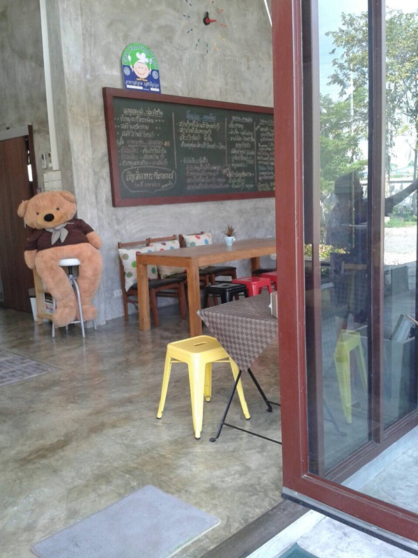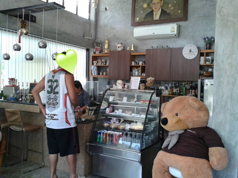 ตุ๊กตาหมีตัวใหญ่ที่เหมือนจะเป็นมัสคอตของร้าน มีภาพวาดพ่อหลวงติดผนัง ^^