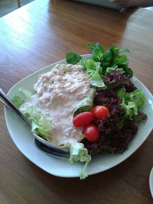 สลัดยำทูน่า ผักสดกรอบดีมาก น้ำสลัดครีมรสเผ็ด กินไปกินมาเผ็ดอยู่เหมือนกัน เรามันกินเผ็ดไม่เก่ง แฮ่ๆ แต่แม่เราชอบ กินเกลี้ยงเลยทีเดียว