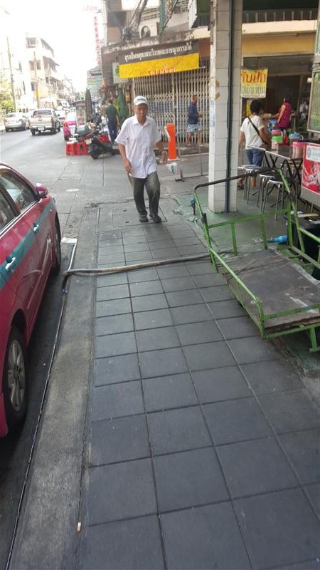 เดินผ่านร้านราดหน้า ร้านนึง เจอแกวางท่อต่อตรงจากกระทะ ลงท่อระบายน้ำตามรูป