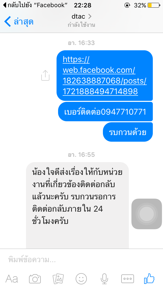 เราก้เข้ามาดูช้าไปเนอะ นางดีแทคนางมาขอรายละเอียดเพื่อจะเอาไปทำไรเราไม่ทราบเราเลยตอบไปวันอาทิตย์เวลา 16.55น. ตามแนบ