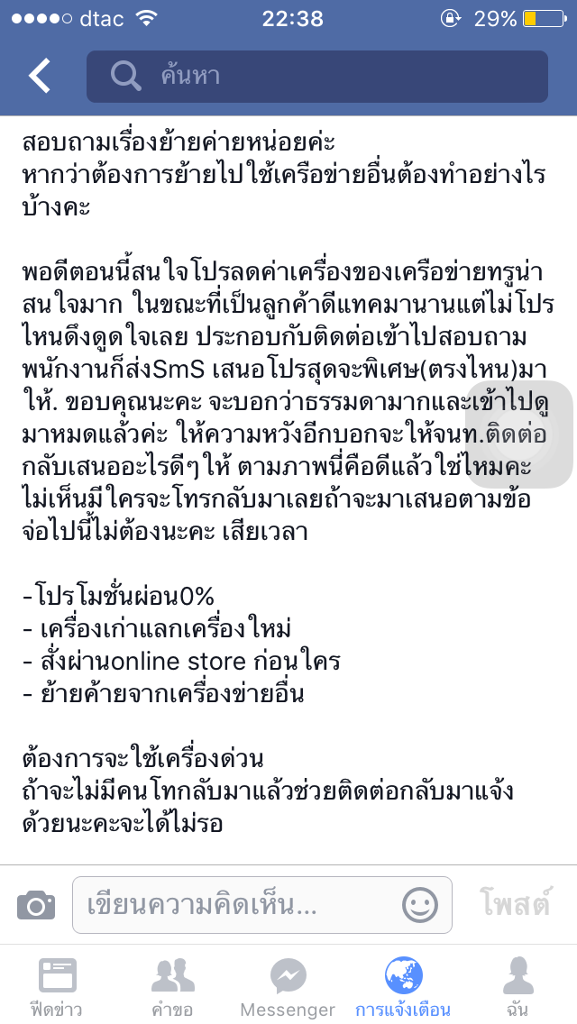 หลังจากสัปดาห์ที่แล้วที่เราได้ติดต่อเข้าไปที่ดีแทคเพื่อขอคำปรึกษาว่าจะย้ายค่าย