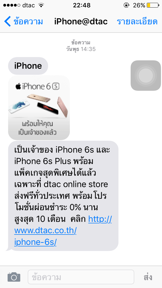 ผ่านไป1ชม. ส่ง sms. เสนอโปรสุดพิเศษมาให้ คือผ่อน 0% 10เดือน