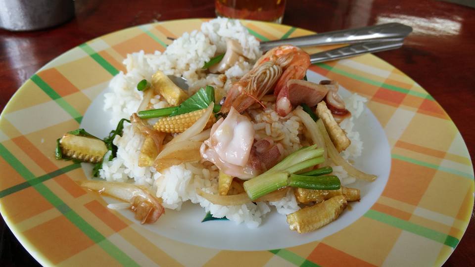 มีร้านอาหารตามสั่งใกล้ๆ เลยนึกไรไม่ออก สั่ง "ข้าวทะเลกระเทียมพริกไทย" 1 จาน