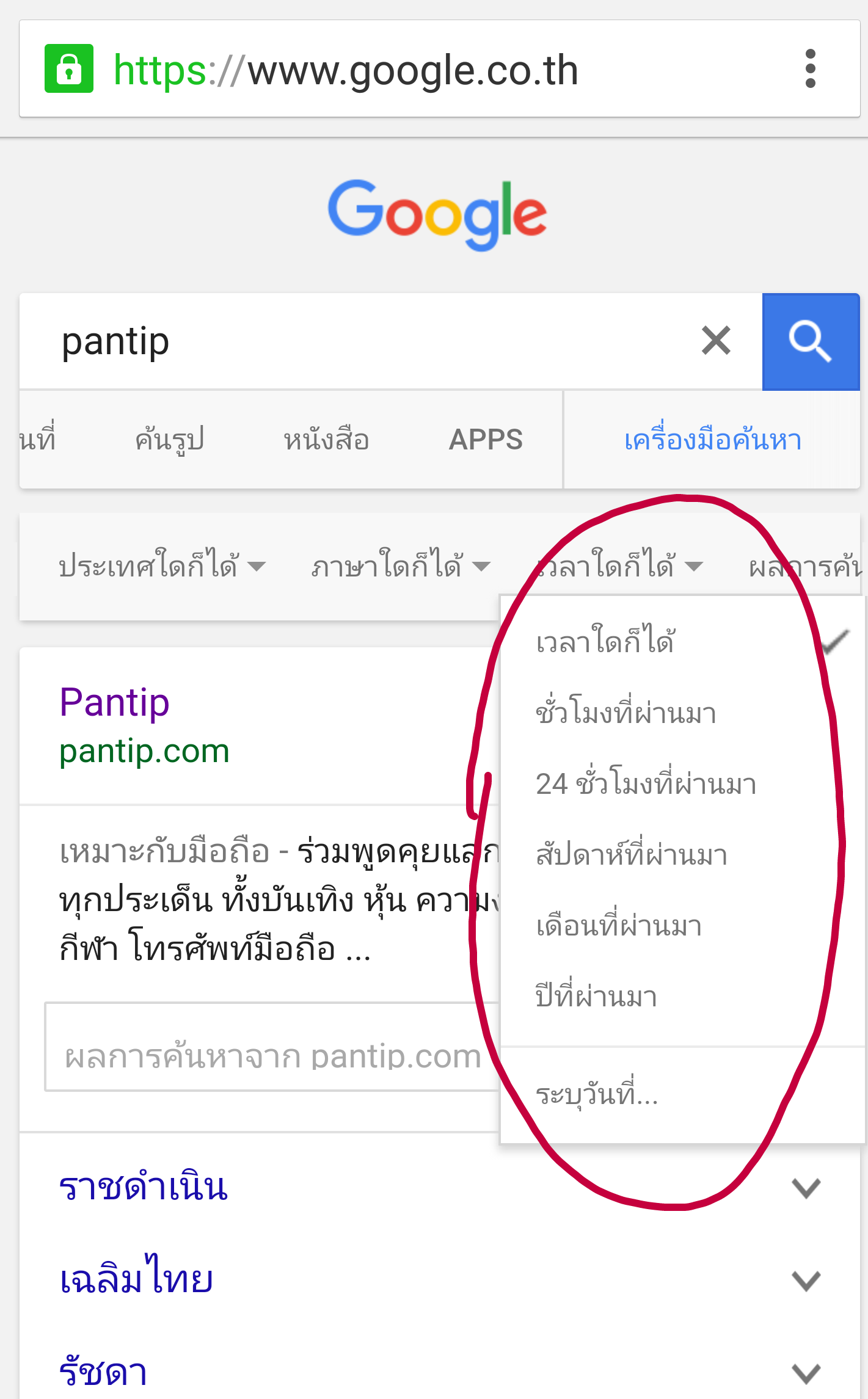 ทำไมแอพ google ไม่มีให้ค้นหาตามช่วงเวลา