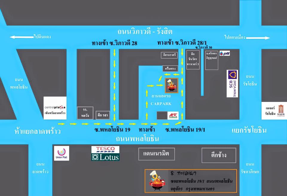 ร้านแปดทะเลเผา เปิดมาได้ประมาณ 3 เดือน ร้านอยู่บนถนนพหลโยธินถ้าบอกตำแหน่งไปแล้วทุกคนจะร้องอ๋อ เพราะว่าอยู่ตรงเวิ้ง MK ที่อยู่ตรงข้ามกองปราบปรามและแดนเนรมิต(เก่า) ใครที่มาจากทางห้าแยกลาดพร้าวมุ่งหน้าแยกรัชโยธิน ผ่านเซ็นทรัลลาดพร้าว และโรงเรียนหอวัง เลยไปสัก 500 เมตร ให้สังเกตป้ายทางซ้ายมือ เป็นรูปปูสีส้ม ๆ ก็เลี้ยวเข้าไปจอดรถด้านในได้เลยครับ ร้านจะอยู่ด้านในสุดทางขวามือ