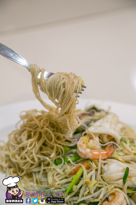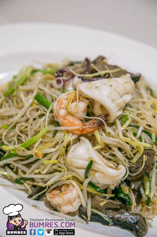 จะใช้หมี่ซั่วมาผัดกับกุ้ง ปลาหมึก เห็ดหอม กลิ่นหอมดี ถือเป็นหมี่ซั่วที่อร่อยใช้ได้ รสชาติไม่เข้มมากนัก และมั่นใจว่าเราน่าจะคุ้นเคยกับกลิ่นรสของหมี่ผัดสไตล์นี้แน่นอน แต่ผมว่าจากชื่อเมนูแล้ว เมนูนี้มันควรจะต้องมีอะไรพิเศษมากกว่านี้ เช่น การผัดให้หอมออกสไตล์ฮ่องกงกว่านี้ ใช้วัตถุดิบที่หลากหลายกว่านี้เพราะเป็นรวมมิตรทะเล และผมรู้สึกว่าถั่วงอกเยอะไปครับ