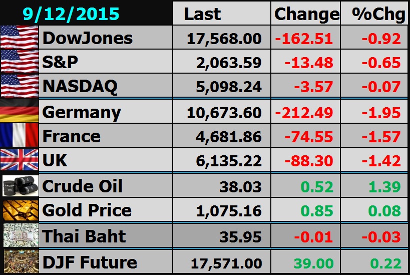 DJIA : ปิดร่วง 276.09 จุด วิตกศก.จีน,สถานการณ์ตอ.กลาง EU : วิตกหุ้นจีนทรุด ฉุดตลาดหุ้นยุโรปร่วงหนัก