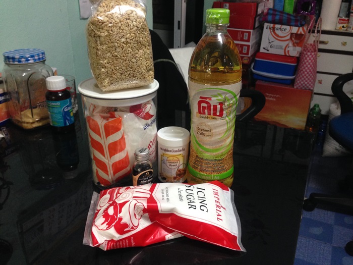 3. น้ำตาลไอซิ่ง 90 กรัม (สูตรที่หาในเน็ตส่วนใหญ่ 120-150 กรัม แต่ผมไม่ชอบกินหวานทำอะไรจะลดน้ำตาลตลอด 30-50กรัม) 55+