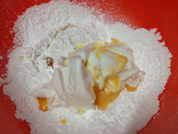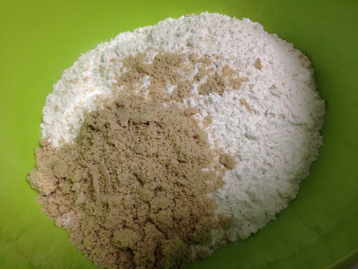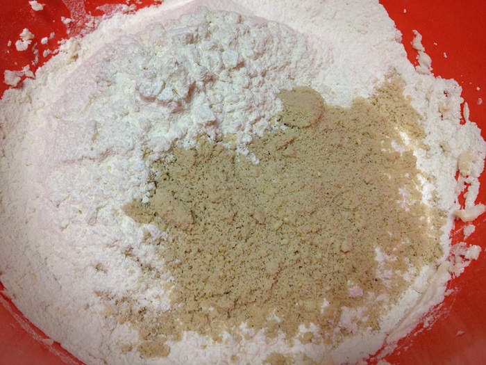 - แล้วนำมาเทรวมกับแป้งที่ร่อนไว้