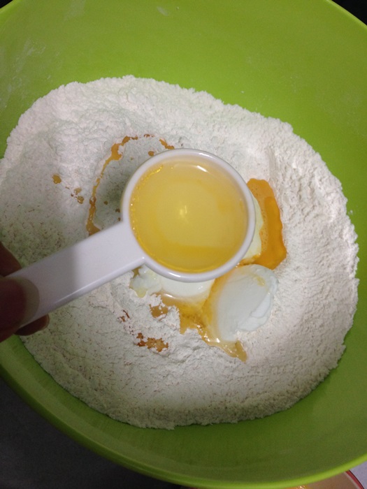 - ใส่เนยขาว กับ ไข่ไก่ ลงไป