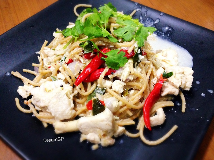 สปาเก็ตตี้(โฮลวีท) ซอสต้มข่าไก่(นมจืด)