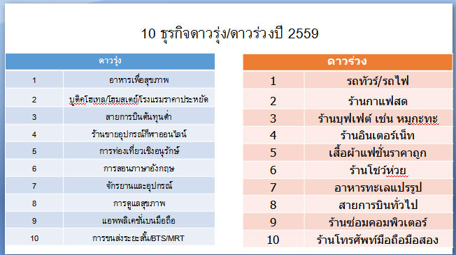10 ธุรกิจดาวรุ่ง-ดาวร่วง แห่งปี 59