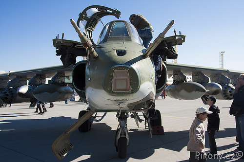 กล้องส่องเป้าของ SU-25 ติดอยู่ที่หัวเครื่องบินเลยครับ