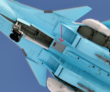 กล้องส่องเป้าของ SU-34 อยู่ที่ท้องเครื่องบินเป็นแบบ POP UP เวลาจะใช้ค่อยโผล่ออกมา กล้องนี้มีชื่อว่า LTPS platan
