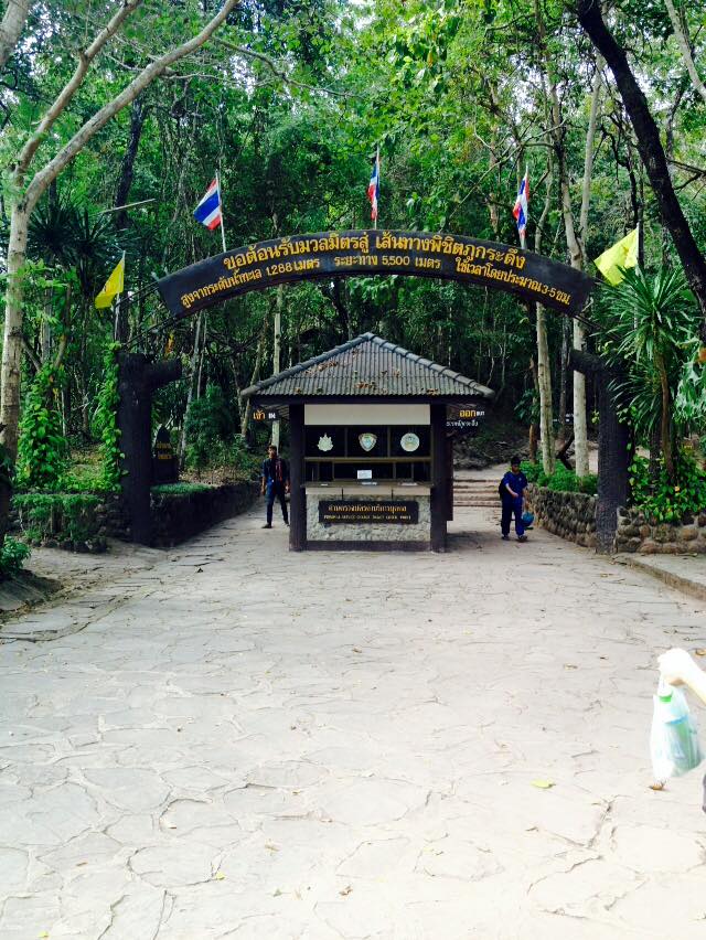 ผมหันไปเห็นป้ายบอกว่าระยะทาง 9 กม. ตอนนั้นใจเริ่มเหนื่อย และมีคำถามในใจเขาขึ้นไปกันได้ยังไงหว่ะระยะทางไกลเกิน ดีนะครับวันที่ผมขึ้นไปอากาศไม่ค่อยร้อนฟ้าฝนเป็นใจอากาศดีต้องขอบคุณภูกระดึงที่ต้อนรับผมเป็นอย่างดี ไหนก็มาแล้วเดินสิหว่ะจะช้าทำไม
