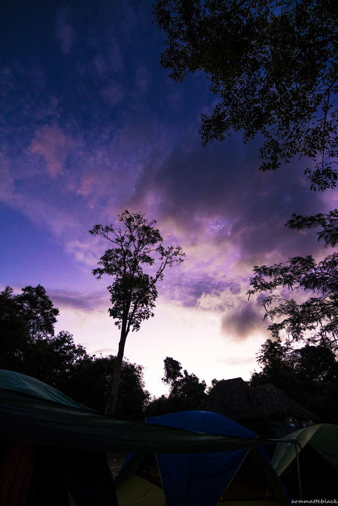 พอตะวันเริ่มตกดินเท่านั้นแหละโอ้โหโครตมืดเรียกได้ว่ามองอะไรไม่เห็นเปิดไฟกันแทบไม่ทันเลยที่เดียว อากาศตอนหัวค่ำก็เย็นสบายดีส่วนตอนดึกๆกับตอนเช้ามืดนี่หนาวเลยแหละ10กว่าองศาได้ลมแรงมากนอนๆอยู่นึกว่าฝนตกเสียงลมพัดต้นไม้ ระหว่างนอนก็ไหลไปเถอะพื้นที่เต้นท์กางเป็นทางลาด 555555555