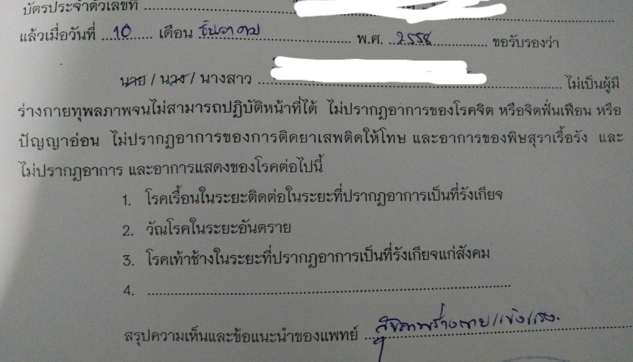 เราไปขอใบรับรองแพทย์ที่คลินิก บอกว่าเอาไปสมัครสอบราชการ เอาประกาศฯไปให้ทางคลินิกดู แล้วก็ได้มาเป็นแบบนี้