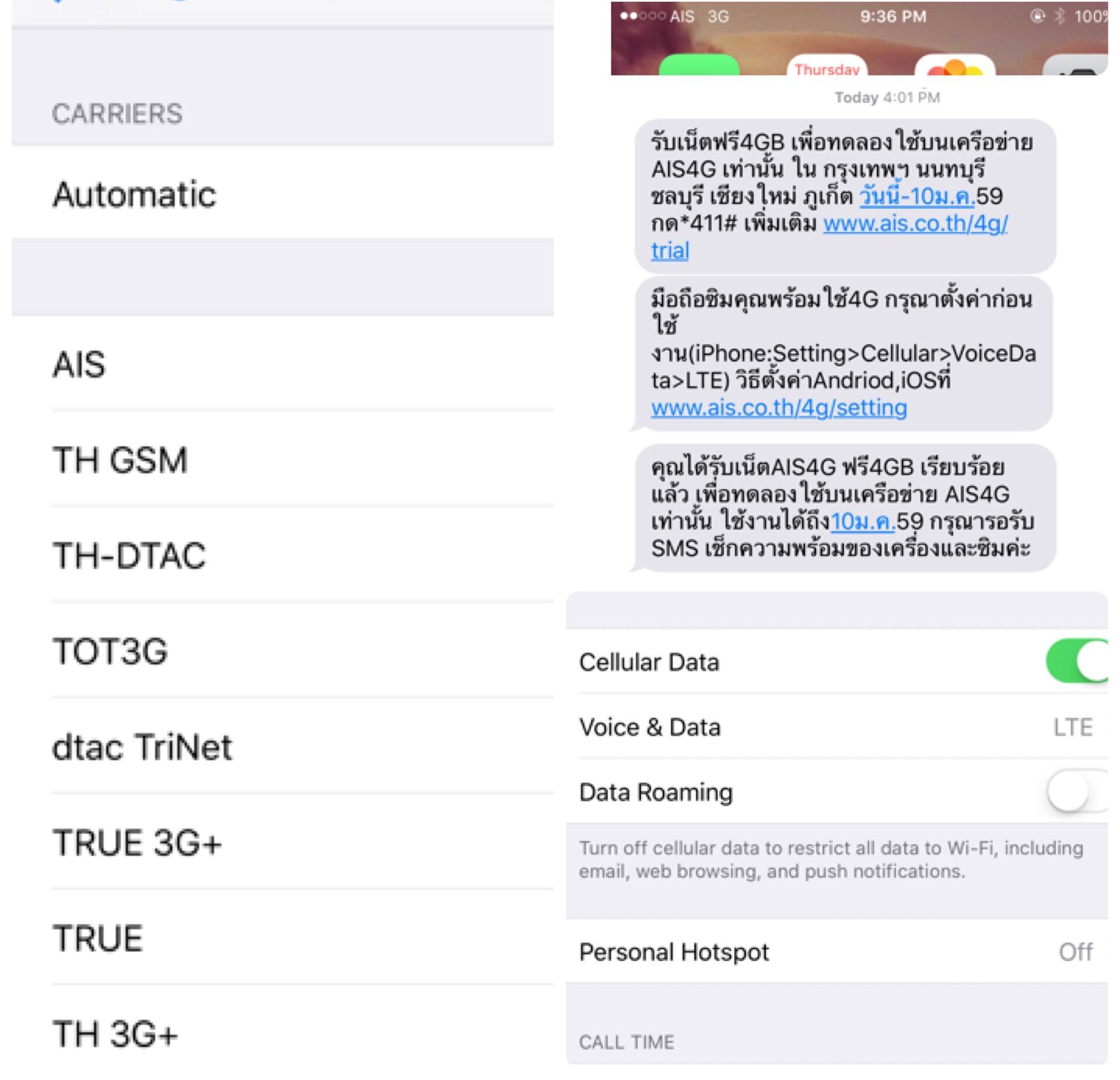 อันนี้คือสงสัยว่าตอนที่ AIS สามารถใช้งาน 4G ได้ใหม่ๆ สัญลักษณ์ที่แสดงก็คือ LTE หลังจากนั้น เอไอเอสก็ทำการอัพเดท Carrier ใหม่ก็มาเป็น 4G (ส่วนตัวชอบ LTE มากกว่าและที่ ตปท.เขาก็ขึ้นเป็น LTE กันหมด เลยอย