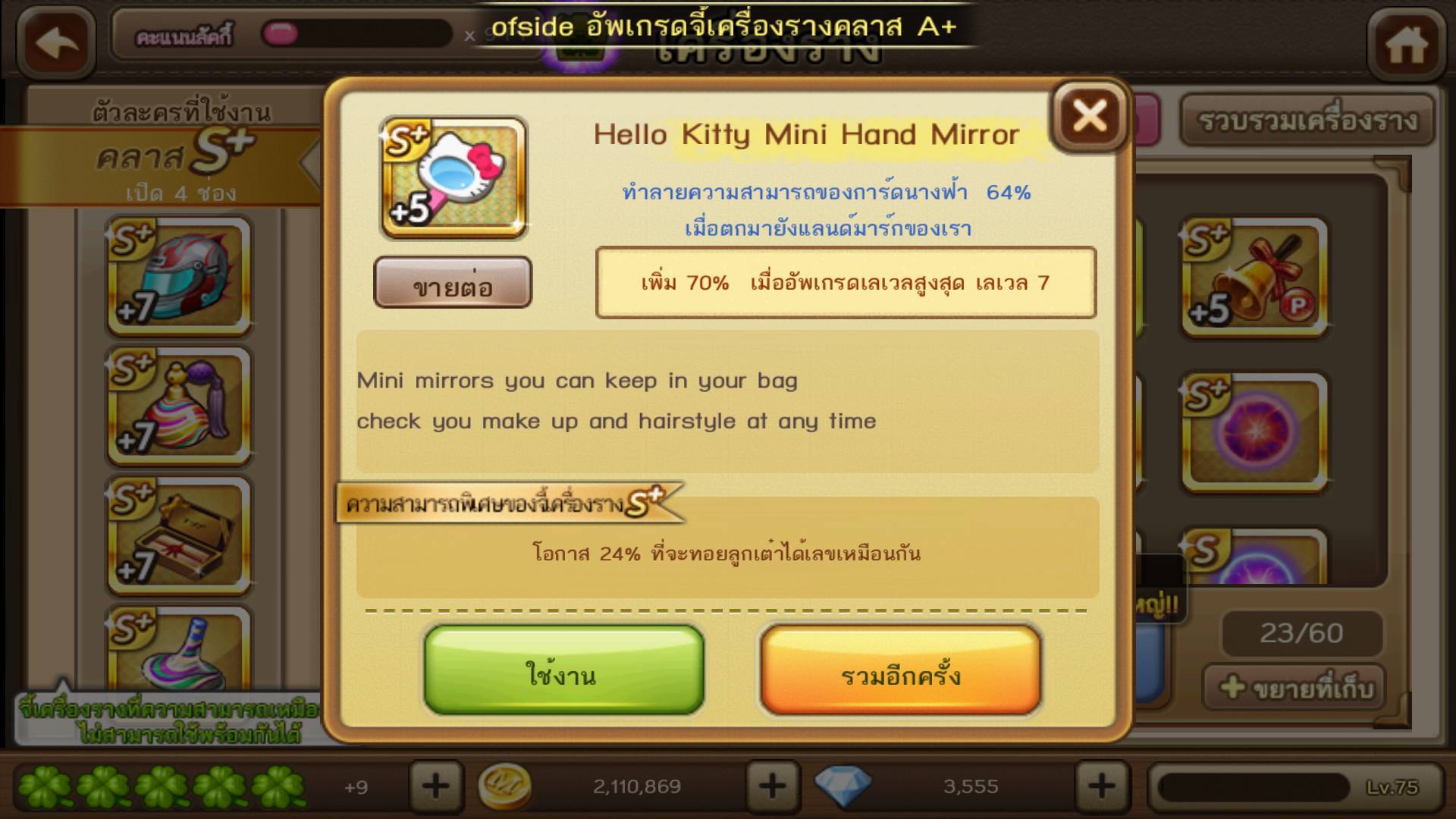 คือมันเพิ่จริงๆหรือเราไม่มีดวงครับ สุ่มไปเกือบ1000เพชร ไม่ได้จี้เอสมาสักอัน ย้ำ ไม่ได้เลยสักอัน รวมกับอีเว้นท์ประจำวัน+กล่องที่ดอง หมดไปเยอะมากๆๆๆ ก็ไม่มีวี่แววได้จี้เอสมาเลย คือต้องมาแต้มluckyเอาเอง
