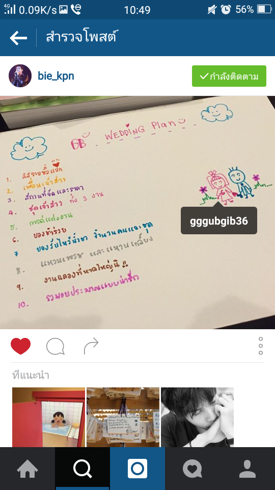 เลื่อนดูไอจี แล้วเห็นแคปชั่นที่บี้เขียน เมื่อเห็นภาพแพลนงานแต่งที่กุ๊บกิ๊บส่งมา น่ารักมาก