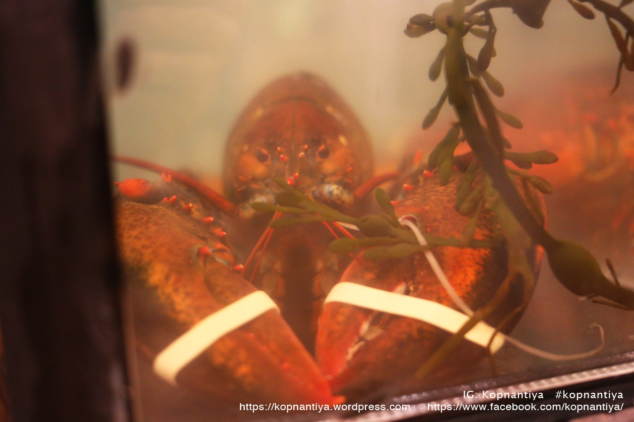 เดินต่อมาอีกนิดเจอกุ้ง กั้ง ล็อบสเตอร์ ปลาอยู่ในตู้ค่ะ สดมาก เห็นเเล้วก็สงสาร ไปดีกว่า >,<