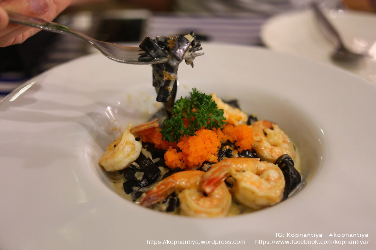 3 เฟตตูชินี่หมึกดำซอสครีมไข่กุ้งรสจัดจ้าน ราคา 260 บาท เมนูนี้กรี๊ดสุดค่ะ ชอบมากกกก ซอสครีมอร่อยมากจริงๆเผ็ดนิดๆ ครีมเข้มข้นมาก พอมีไข่กุ้งกรุบๆกัดเเล้วมีน้ำออกมา ฟินมาก อยากสั่งอีกจานจริงๆนะถ้าไม่กลัวอ้วน เมนูนี้ให้ 10 คะเเนนเต็มเลย