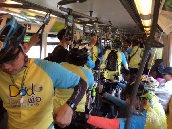 บรรยากาศภายในรถไฟฟ้า BTS ประชาชนนำจักรยานเข้าร่วมกิจกรรม #ปั่นเพื่อพ่อ แน่นตู้โดยสาร