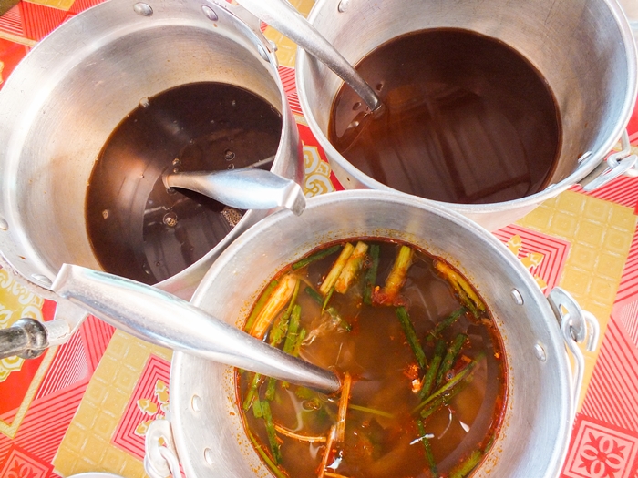 ซึ่งที่ร้านนี้เค้าจะมีน้ำยาให้เราเลือกสามอย่างครับ คือ น้ำยากะปิ ปลาร้า และป่า