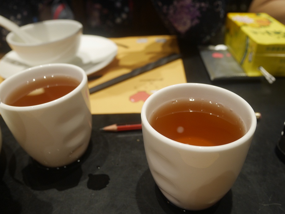 อุปกรณ์พร้อม! ... ที่ร้านจะมีกระดาษ (ข้างๆแก้วชา) เลือกอาหารจากกระดาษแผ่นนั้นแล้วส่งให้พนักงานในร้านเลยครับ
