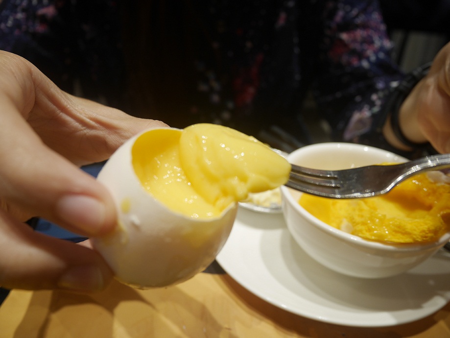 เมนูที่ 4 อันเนี้ยะ อร่อยฝุดแร่ะ เย็นๆ กินอารมณ์ประมาณพุดดิ้ง เสิร์ฟมาในเปลือกไข่ที่ สตรอง !