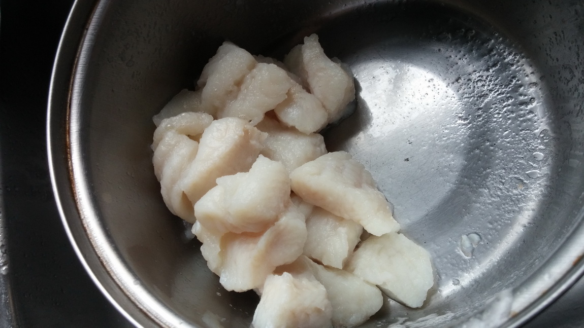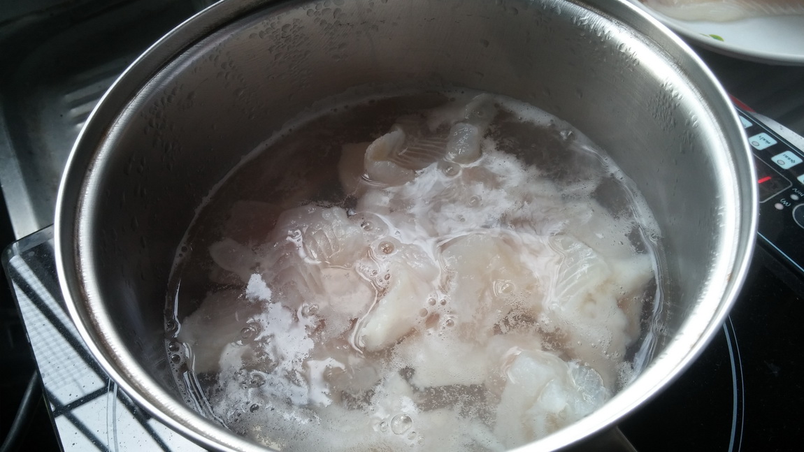ก็จะได้ปลาเนื้อสีขาว แบบนี้ครับ ในหม้อนี้ผมใช้ ปลา 2 ชิ้นครับ
