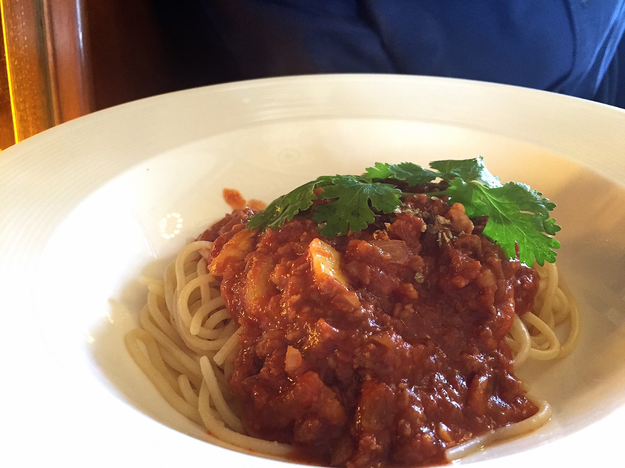 ส่วนอาหารก็สั่งสปาเกตตี้โบโลเนสและสลัดแฮมชีส ส่วนตัวคิดว่าธรรมดานะคะ กลางๆ ไม่ได้แบบว้าวว เท่าไหร่ค่ะ