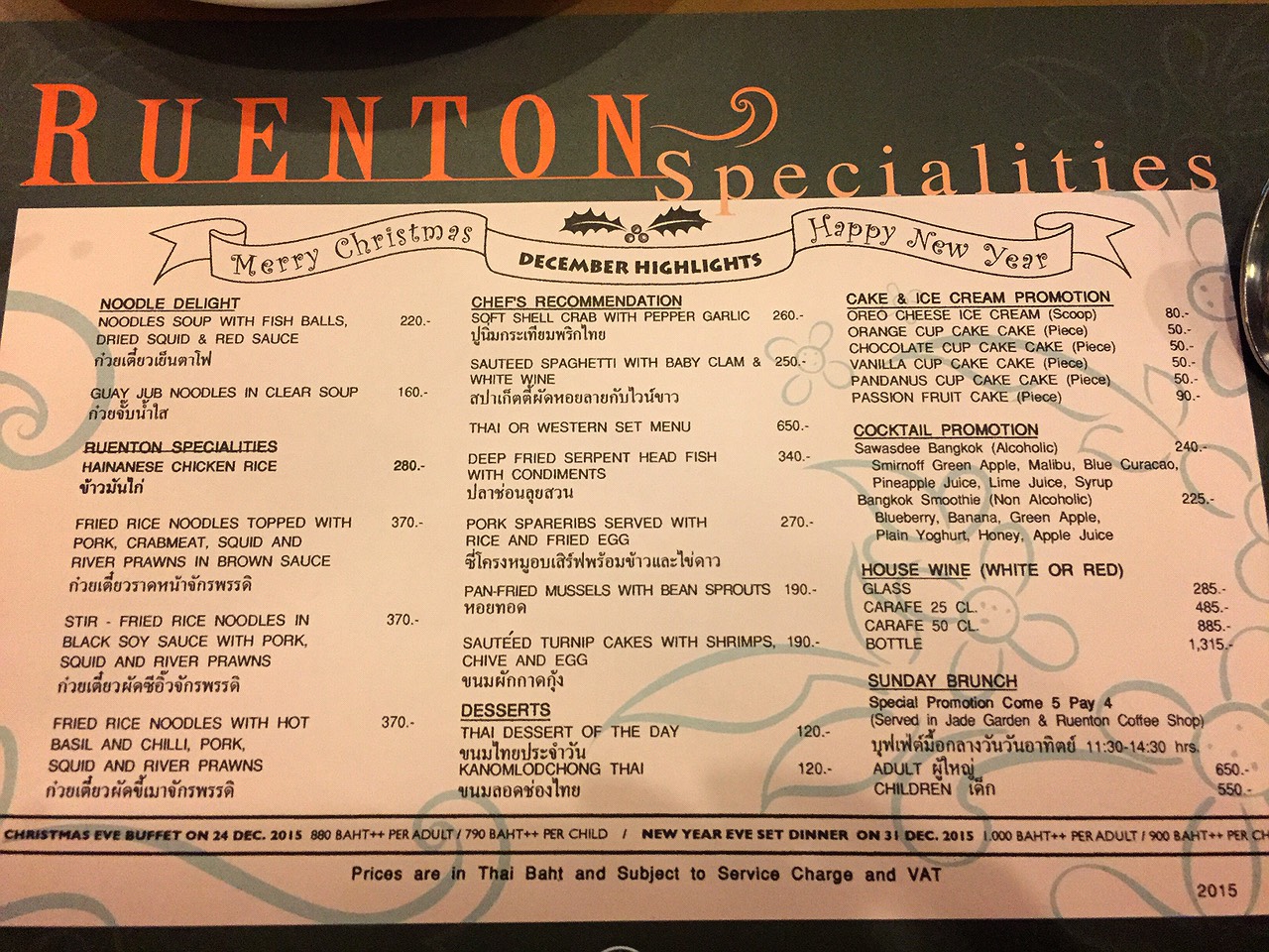 ส่วนมื้อเย็นเราไปลุยกันสองที่ค่ะ ที่แรกคือร้านอาหารเรือนต้นอยู่บริเวณชั้น 1 โรงแรมมณเฑียร สุรวงศ์ ตอนที่เราไปประมาณ หกโมงได้ มีลูกค้าอยู่สองโต๊ะ พนักงงานต้อนรับใส่สูทดูดี พูดจาเรียบร้อย