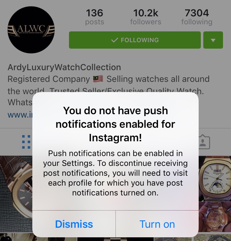 ปกติเราใช้วิธี เข้าไปใน Instargram ของคนนั้น กดจุดสามจุด เลือก”Turn on notification” ปัญหาคือ มันไม่มีเลย ไม่รู้จะแก้ยังไง อยากตั้งไว้แค่ 2-3 IG ไม่เอาทุกอันจ้า