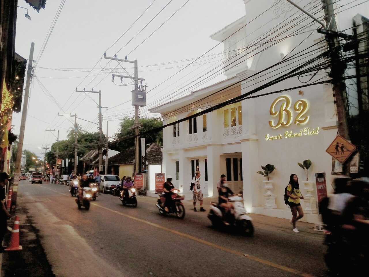 หน้าโรงแรมช่วงเย็นๆ คนเยอะ รถแยะะะะะะะ คือดี รายล้อมไปด้วยร้านอาหารดีๆ เยี่ยมเลยยยย