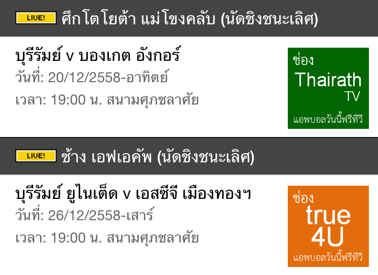 ** บางคู่อาจมีถ่ายทอดสดผ่านทางทีวี รอยืนยันอีกครั้งครับ ** cr.แอพบอลฟรีทีวี facebook.com/ballfreetv