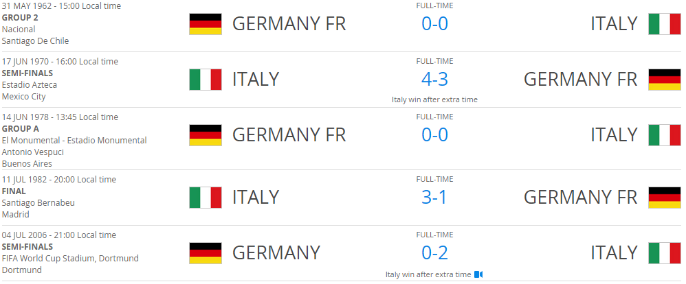 มีฟุตบอลโลกหรือยูโรรอบสุดท้าย ครั้งไหนบ้างที่เยอรมันชนะอิตาลี