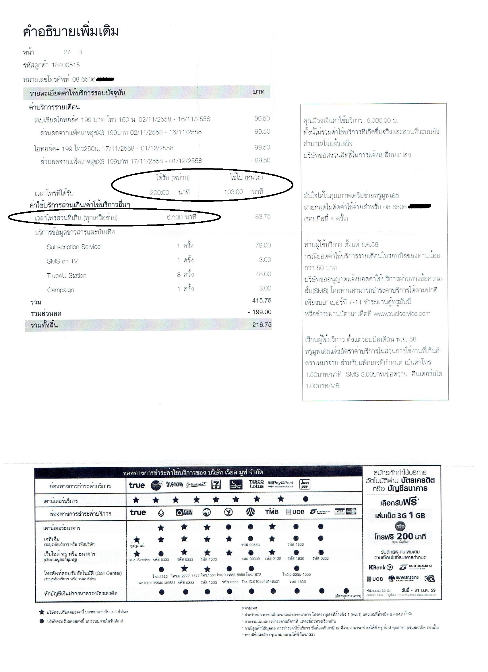 จนกระทั่ง ใบค่าบริการรอบวันที่ 2/11 - 1/12/58 มาถึง พบว่า
