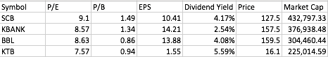 เอาละครับเรามาเริ่มกันที่ Big 4 ก่อนดีกว่า อนึ่ง Big 4 ที่ผมเรียกเพราะว่า อยู่ใน SET50 นะครับ ธนาคารอื่นอย่าพึ่งน้ยอใจ