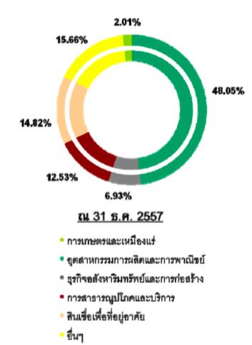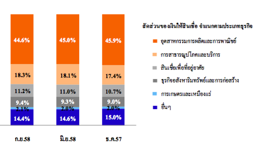 บริษัทให้สินเชื่อในสัดส่วน อุตสาหกรรมผลิตและเชิงพาณิชย์สูงสุดคือในไตรมาส 3 สูงถึง 44.6%