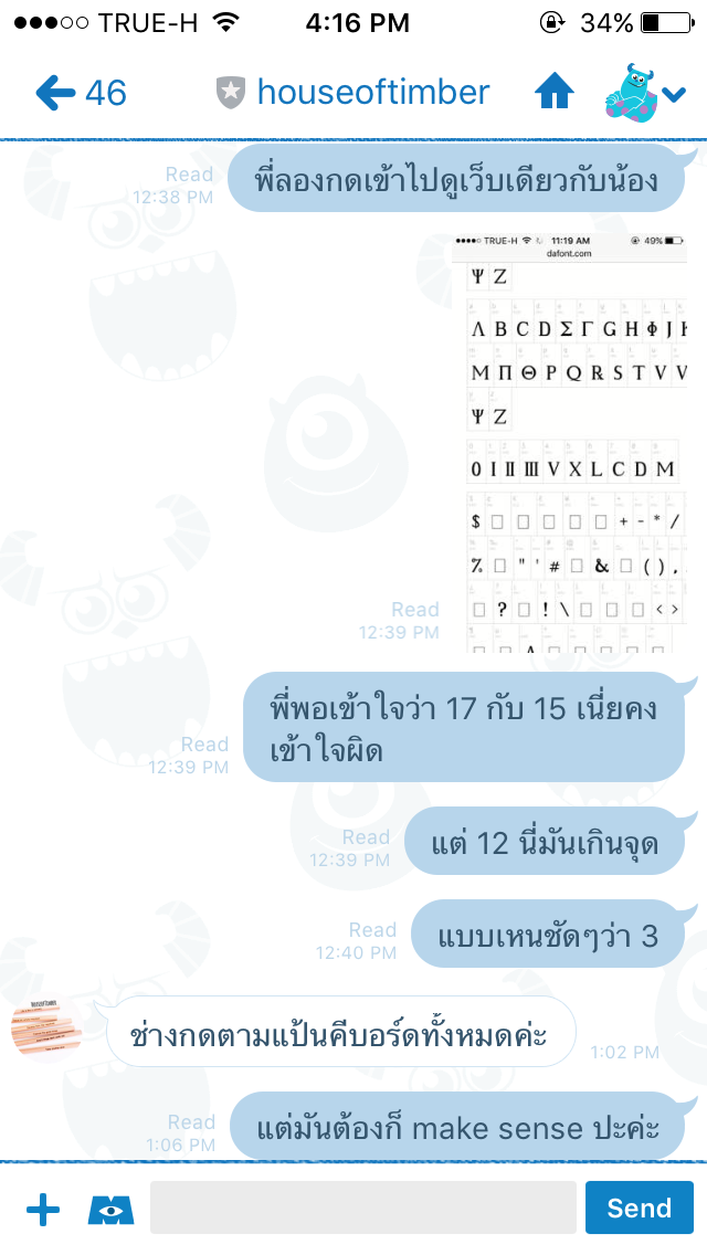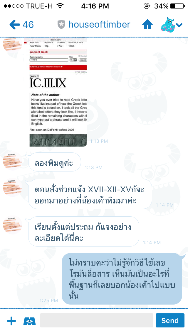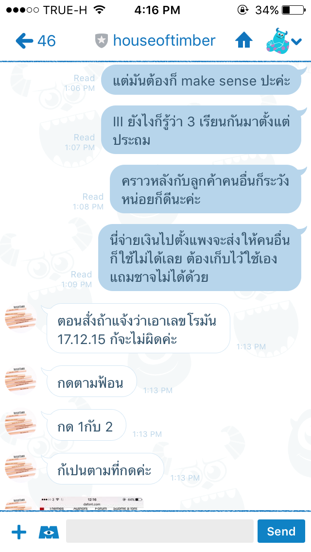 สิ่งที่ตามมาคือไม่มีการรับผิดชอบหรือขอโทษใดๆทั้งสิ้นและ จขกท คาดว่าคงโดนบล๊อคไม่ตอบไปแล้ว สิ่งที่เจ้าของร้านทำมันเกิดจากความไม่ใส่ใจหรือ จขกท อาจผิดเองที่นึกว่าเจ้าของร้านที่มียอด follow เกือบ 2หมื่น ไม่รู้จักวิธีการใช้เลขโรมันพื้นฐาน เด็ก ป.3 ข้างบ้าน จขกท ยังรู้เลยว่า III ไม่ใช่ 12(สิบสอง) =_=;; เพลียจิตกับคนประเภทนี้มากค่ะ เอามาแชร์เป็นประสบการณ์ การซื้อของจากร้านนี้ค่ะ