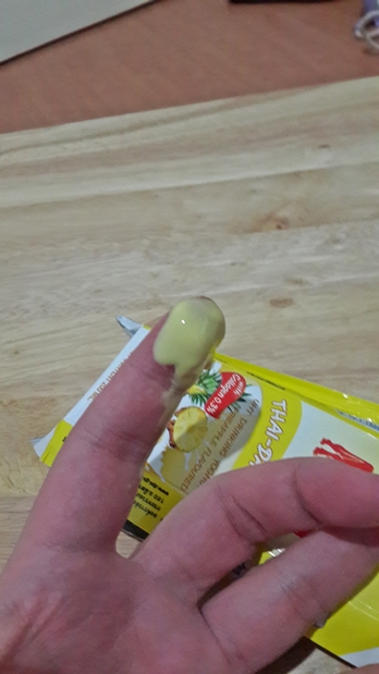 เลยลองผ่ากล่องดู เจออะไรสักอย่าง เหมือนแป้งที่ละลายน้ำไม่หมด ไม่ทราบว่าคืออะไรเหรอครับ
