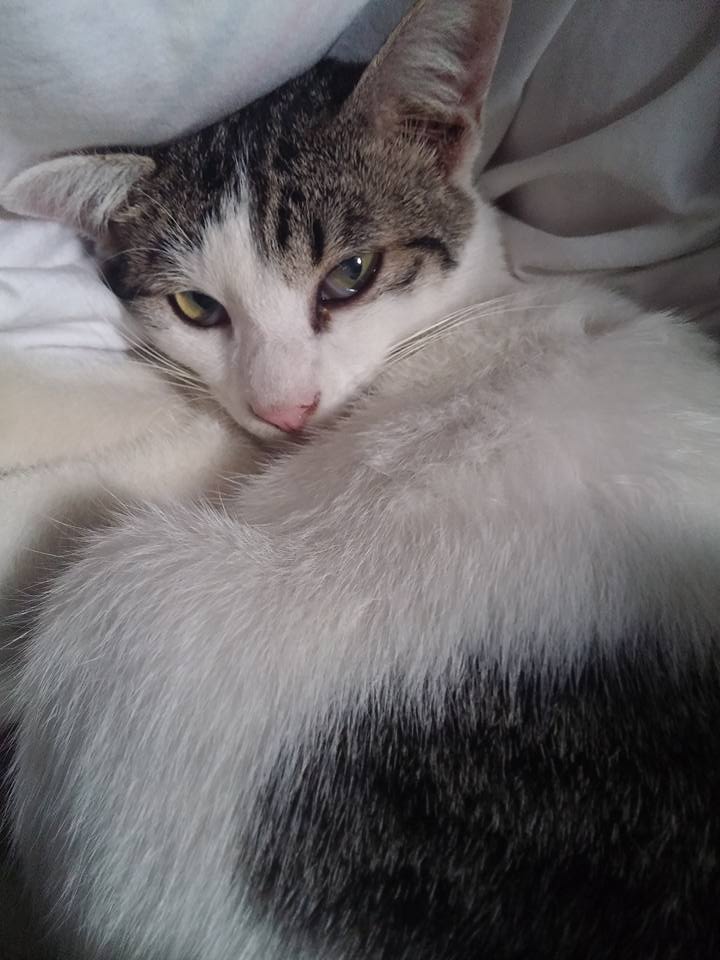 แมวไร้บ้าน ตัวผู้ ชื่อ พิก (ย่อมาจาก พิกวิดเจียน) เกิดเดือนเมษา ตอนนี้อายุ 7 เดือนกว่าแล้ว