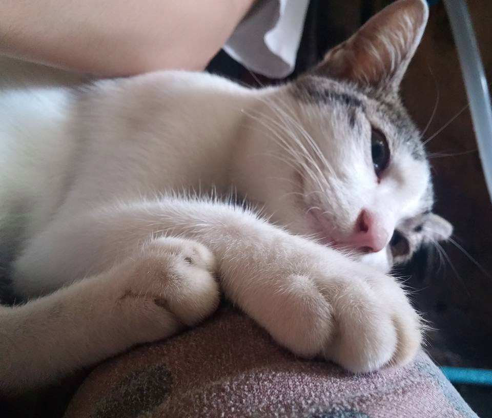 ชอบนอนหนุนตัก ชอบคลอเคลียขา แสนรู้ เวลาหิวข้าวจะมาหา ร้องขอข้าว