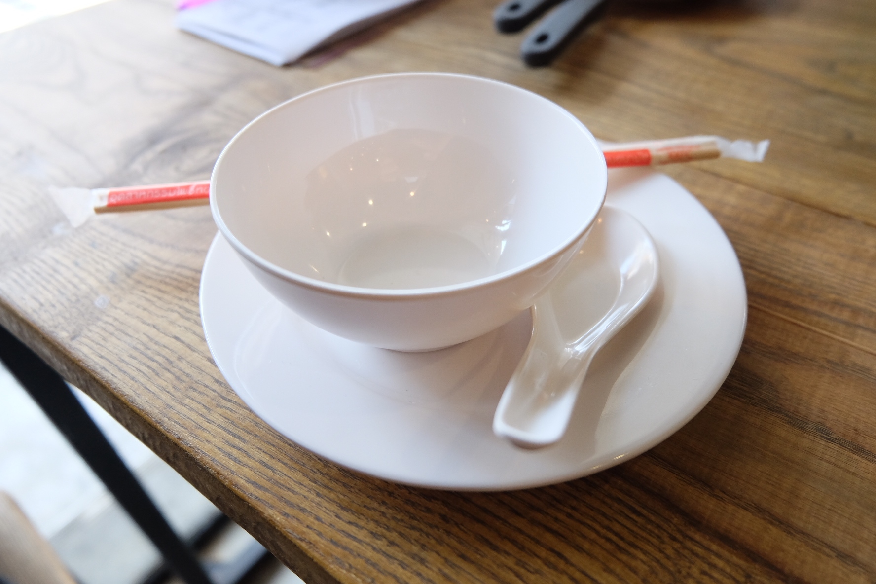 มาดูอาวุธที่ทางร้านเตรียมให้บนโต๊ะกันดีกว่า ถ้วย จาน ช้อน ตะเกียบ พร้อมรบบบบ