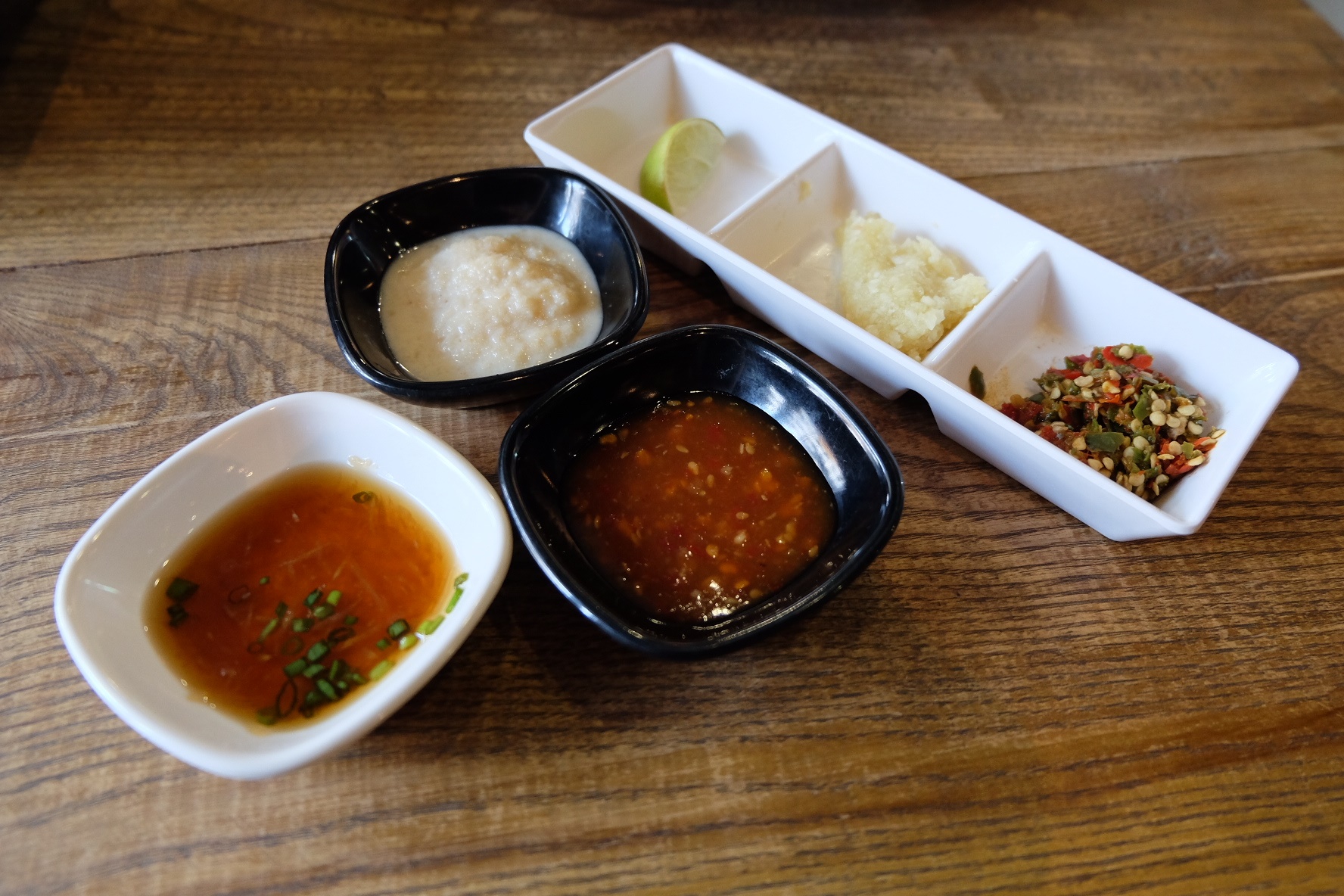 ลองชิมน้ำจิ้มทั้งสามอย่าง รสชาติถือว่าโอเคทั้งสามอย่างเลย