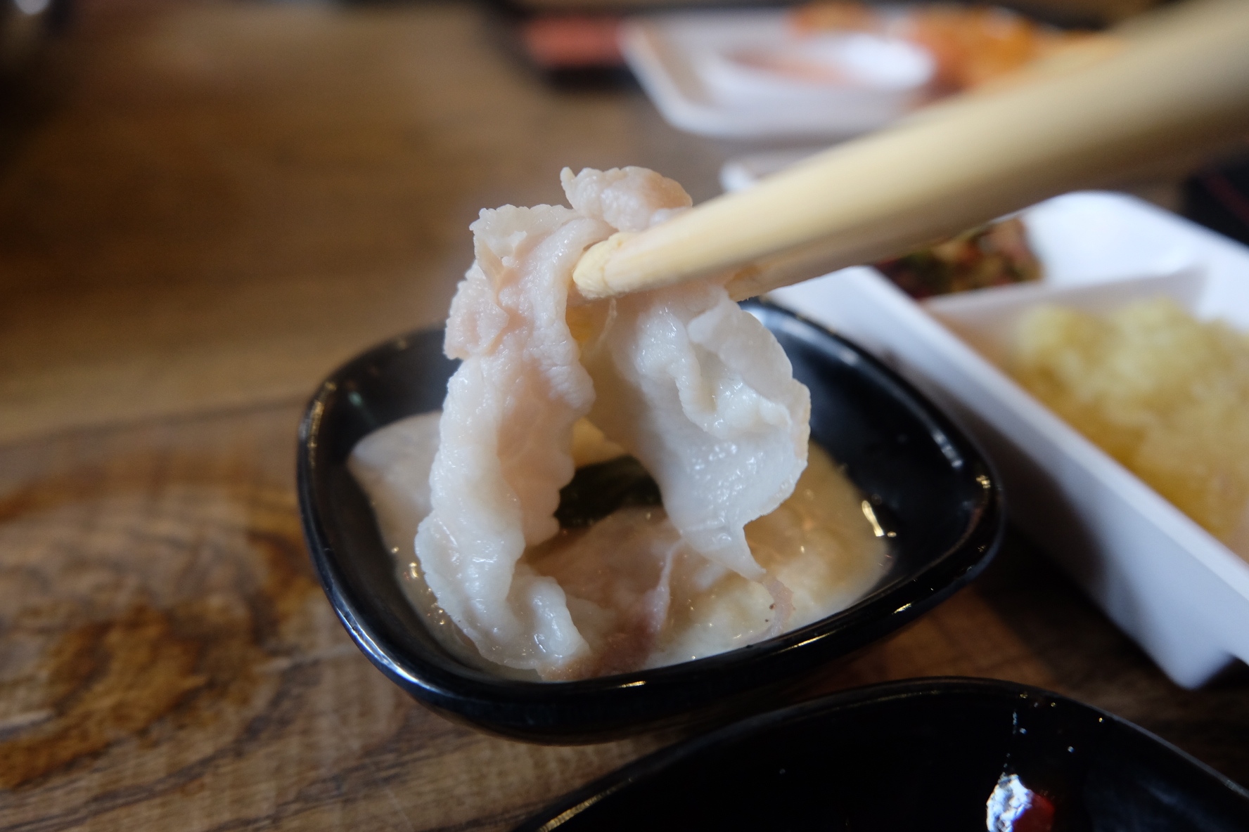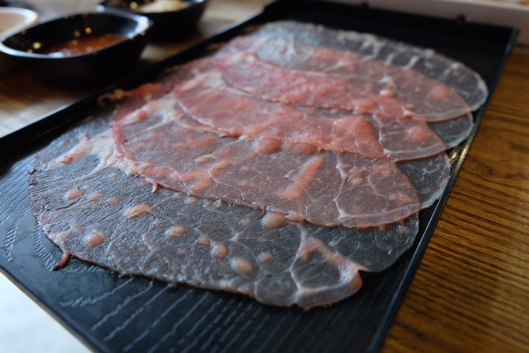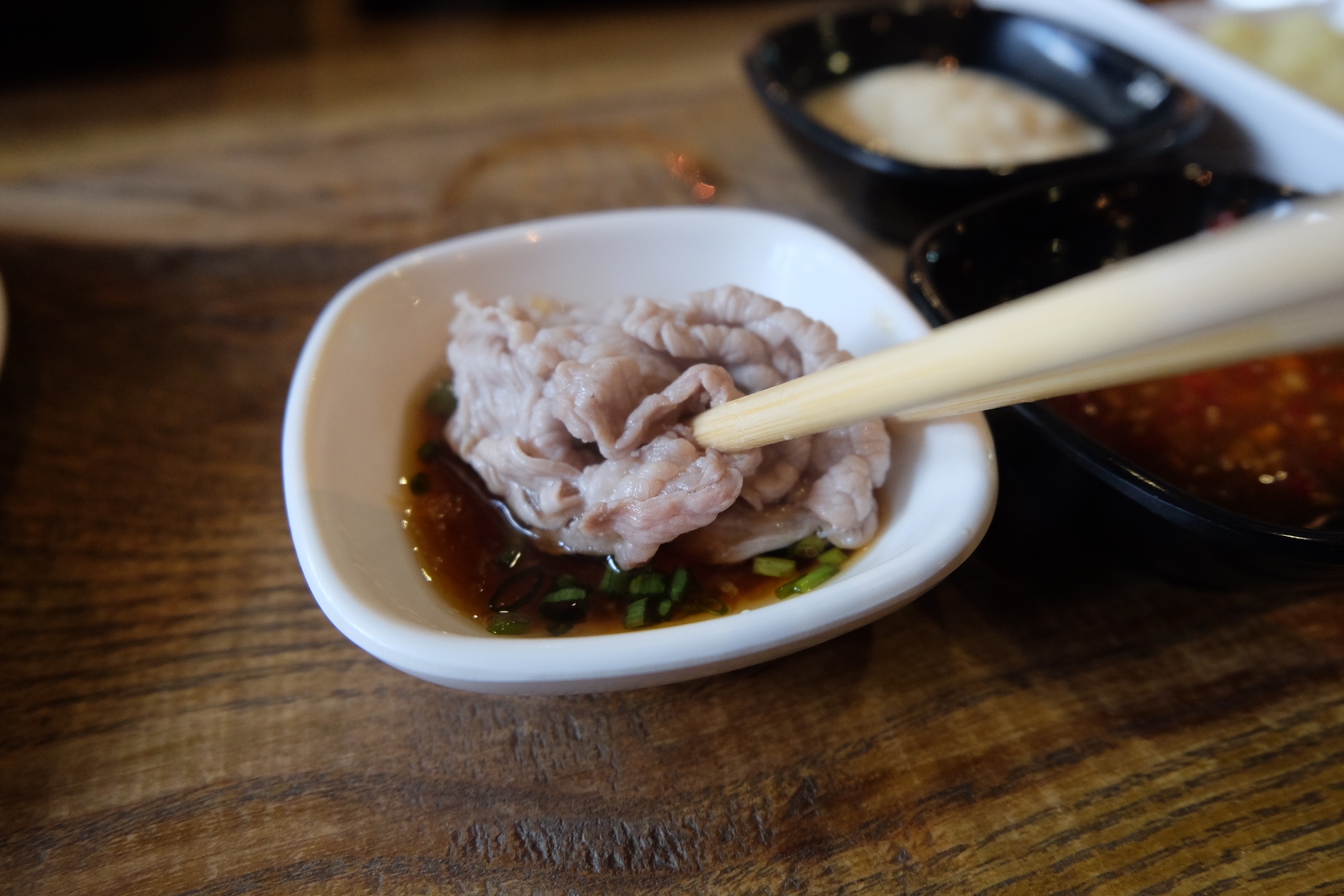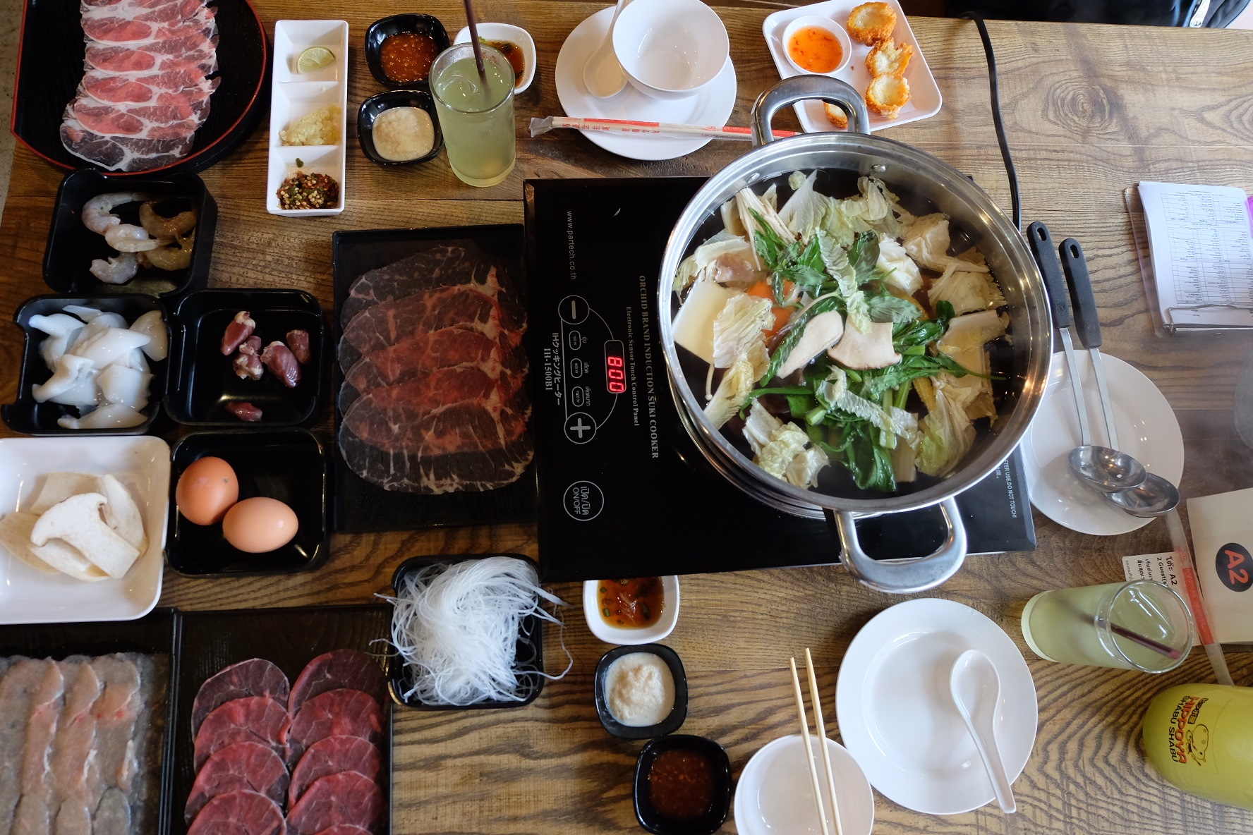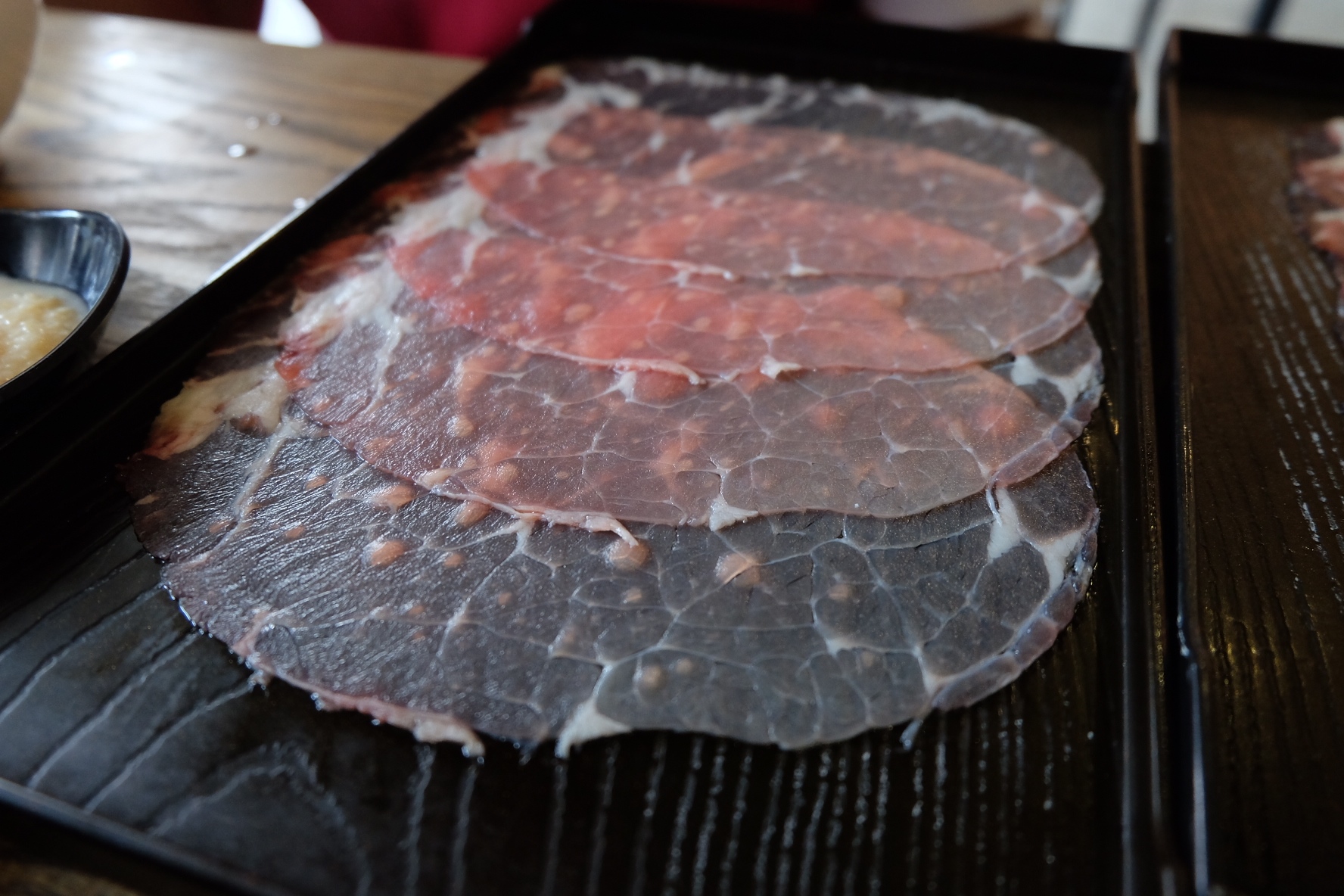 ร้านนี้แล่เนื้อทุกอย่างบางกำลังดีเลย เอาลงไปแกว่งๆสองสามวิก็สุกกำลังดีแล้ว