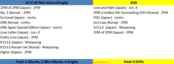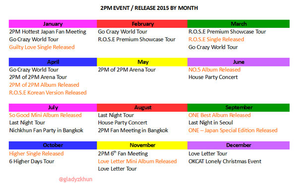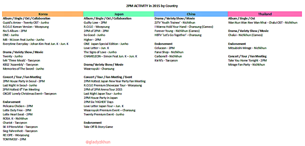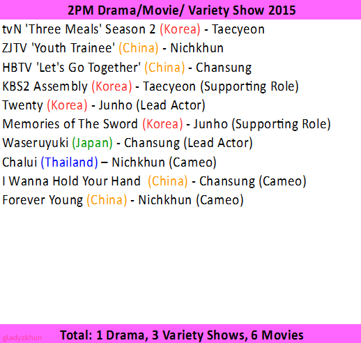 วันนี้เราขออนุญาตสรุปภาพรวมงานทั้งหมดของ 2PM ทั้งกลุ่มและเดี่ยวตลอดปี 2015 นะคะ