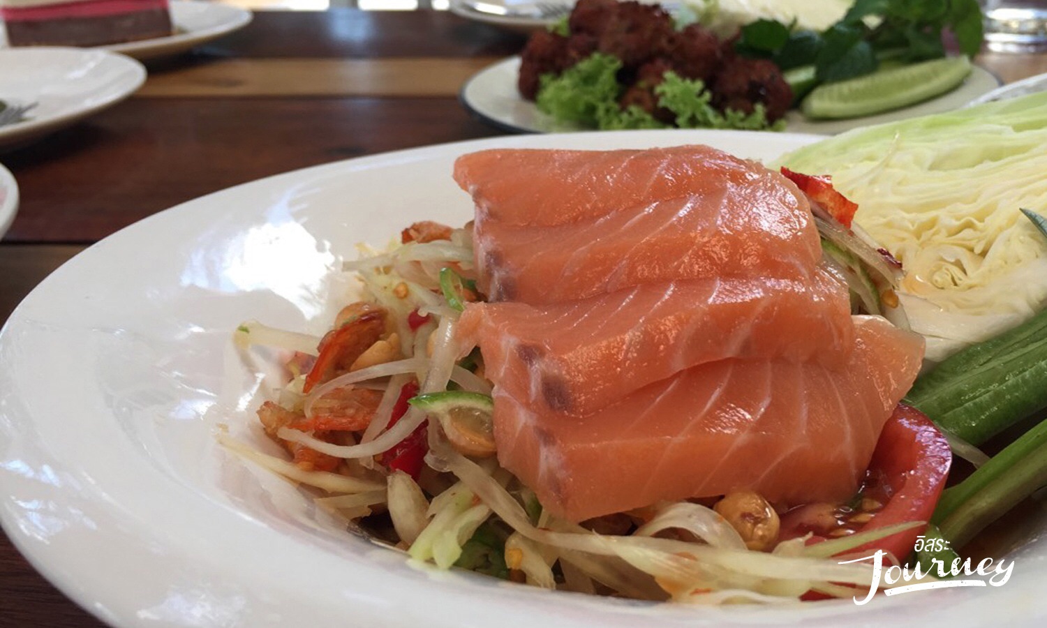 ส้มตำแซลมอล :: เมนูนี้ใครที่ชอบรสจัดจ้านอาจจะไม่ค่อยถูกปาก แต่ถ้าใครชอบรสเบาๆ ไม่จัดจ้านมากเมนูนี้น่าจะถูกปากนะคะ