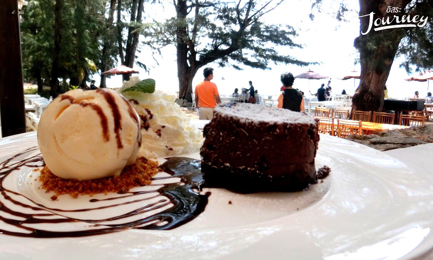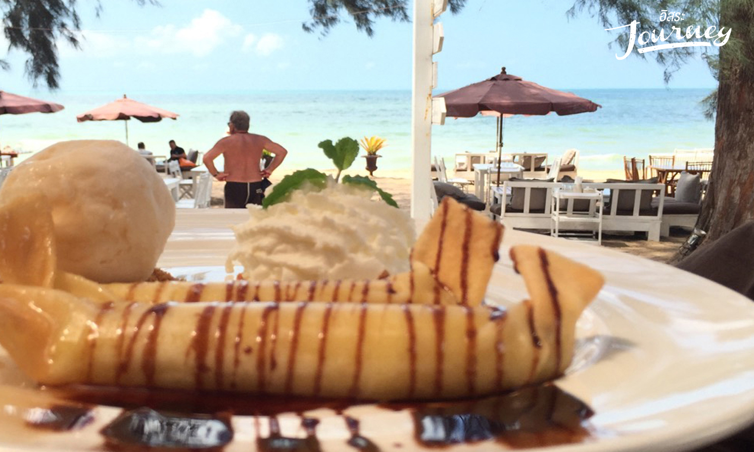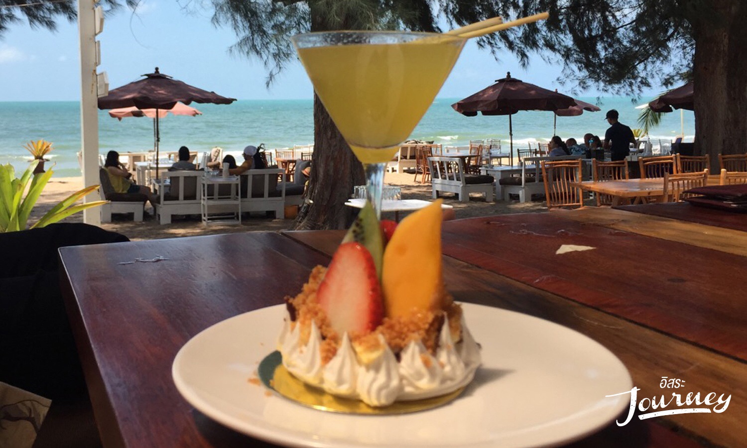 ร้านอาหารริมทะเล ในบรรยากาศส่วนตัว ที่โอบล้อมด้วยต้นสนอายุเกือบ 100ปี ที่เรียงรายอยู่บนหาดทรายกว้าง น้ำทะเลสีคราม เม็ดทรายละเอียดสีทอง ใครที่อยากจะปล่อยใจไปกับสายลม ถวิลหาชีวิต Slow life ที่แห่งนี้น่าจะตอบทุกความต้องการของผู้มาเยือนอย่างไม่มีบกพร่อง นอกจากบรรยากาศเงียบสงบ ลมพัดกระทบผิวกาย แสงกระทบกับน้ำทะเลระยิบระยับ